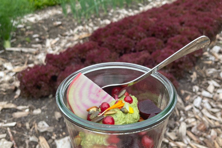 Genießen Sie ein raffiniertes veganes Menü in unserem verwunschenen Französischen Garten – direkt neben dem Gemüse, das auf Ihrem Teller landet. Motto "farm to table" - Erleben, lernen und schmecken Sie die Frische der Natur in einzigartiger Atmosphäre.